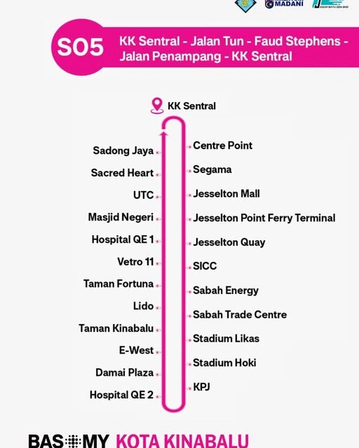 The new S05 route significantly enhances connectivity, starting from KK Sentral and passing through key commercial locations, healthcare, and recreational zones.